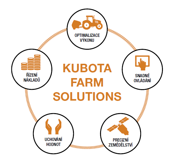 Chápeme, že pro Váš úspěch potřebujete více než jenom výkonný traktor. Dnešní doba vyžaduje komplexní systém produktů a služeb pro zajištění konkurenceschopnosti a přípravy na budoucnost. Kubota Farm Solution (KFS) spojuje všechny potřeby v jednom systému. Systém nabízí inteligentní technologie a další jednotlivé služby. Výhody KFS se vzájemně doplňují a tvoří uzavřený kruh pro ještě lepší podporu při řešení všech problémů dnešní doby.